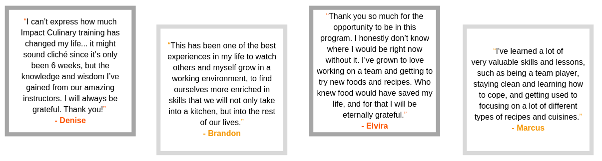 The training will be held in the Impact Culinary kitchen at The Hatchery, located at 135 N. Kedzie Avenue.